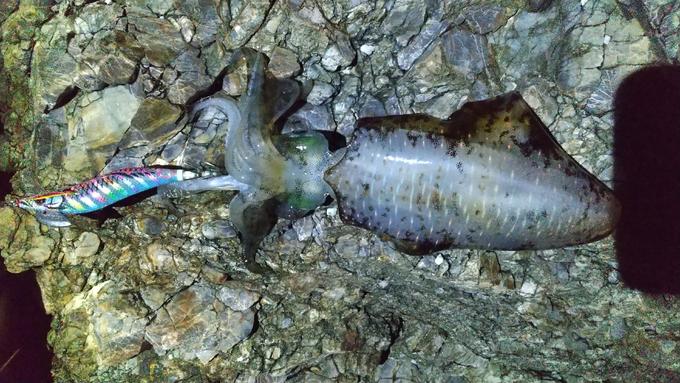 潮が乱れるポイントをアオリーQフィンエース3号で攻略‼️ イカの抱きやすい姿勢の維持を支援してくれるフィンのあるフィンエースは激流ポイントで大活躍でした