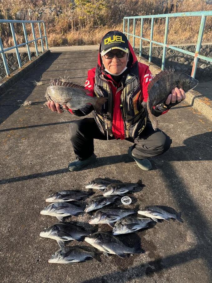 早朝の1時間は 全く当たり無しで 釣友が 一発 喰わせてから ポツリポツリと 動かない潮でしたが 久しぶりの2桁 ゲット