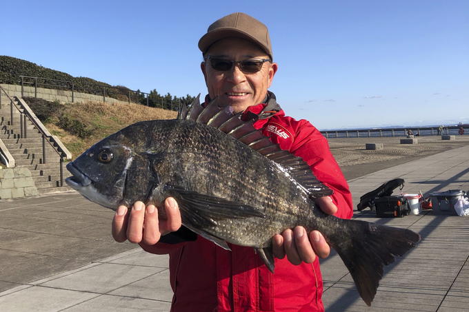 水温が下がり、クロダイの喰いも渋くなりましたが、久しぶりに神奈川県川崎市の東扇島西公園へ午後から行ってきました。いつもは大勢の釣り人で賑わっている当公園ですが、寒波の襲来とあって人影はまばらです。エサ取りの海タナゴとフグが多いのは覚悟の上でしたが、コマセに浮いてくるクロダイを発見。この水温で水面近くまで浮いてくるのは驚きです。すかさずタナを浅くしてその見えクロダイを掛けることが出来ましたが引きは弱く、ただ重いだけといった感じでした。取り込んで見ると意外と大きく53センチとなかなかの良型でした。
