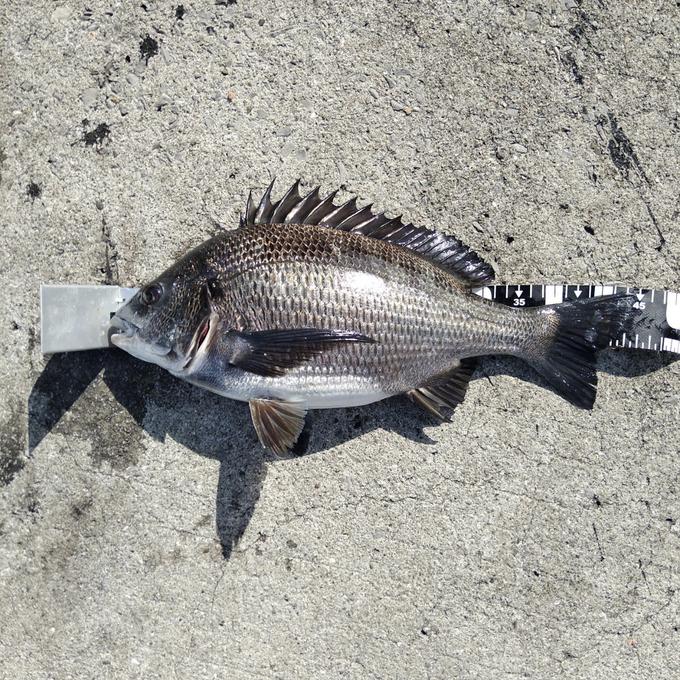 愛媛県宇和島市にある防波堤での釣果です。狙いはグレだったのですが、狙いのグレは釣れませんでした。 ウキ下を2ヒロ半からスタートするもアタリ無し。少しずつ棚を深くして行き、ウキ下竿一本半でやっとウキが消し込み、竿を大きく曲げてくれたのがこのチヌでした。水温も下がってしまい、グレのシーズンはそろそろ終わりかも知れません。