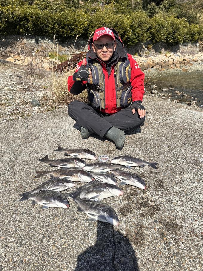 和歌山 中紀 下津大崎の地磯にチヌ調査に行ってきました。午前中にバタバタと食った来ました。 最大は 43センチでした。