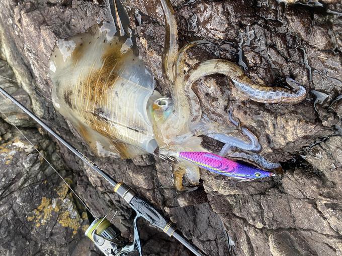 新しい渡船屋さんでの沖磯エギング! 大雨翌日で水潮とウネリの悪条件の中、何とかキロアップゲット!