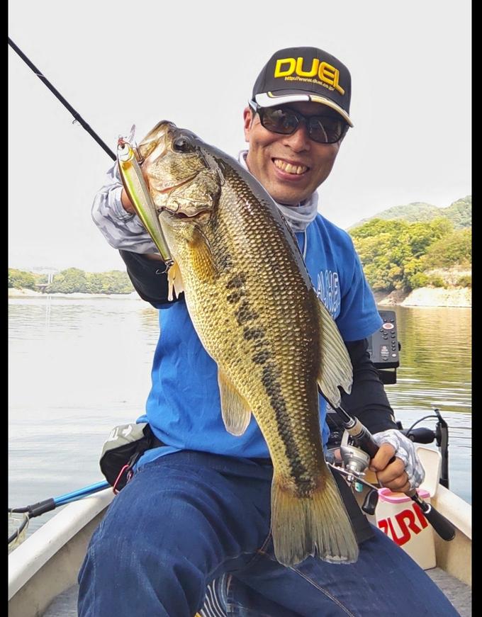今回も濁りが取れない津久井湖へ出撃! 水質はあまり良くないのですが、シャローには小さなベイトフィッシュが多くみられ、ここ最近で一番良さそうな感じ。 そんな状況の中、『クイックダンスストレート5.7』のジグヘッドワッキーで今日のビッグワンをキャッチ! 新色〝相模ミミズゥ/ホワイトフレーク〞をショアラインから水深3mぐらいまでシェイクしながらダウンヒルさせていた時にラインが走りましたね。 このカラーは少し濁りが入った状況で効いちゃうみたいですよ。 また、今日は巻物への反応も良く、いや良かったのですが… バイトが浅いのかジャンプやボード際でバラシまくり… リトリーブ速度を調整したり、フックを交換したりとアジャストし、『L-バス ジャークベイト』と『L-バス クランク MR』でバスをキャッチできました! いよいよ巻物でも楽しめる季節到来!みなさんもガンガン巻いてみてはいかがですか。
