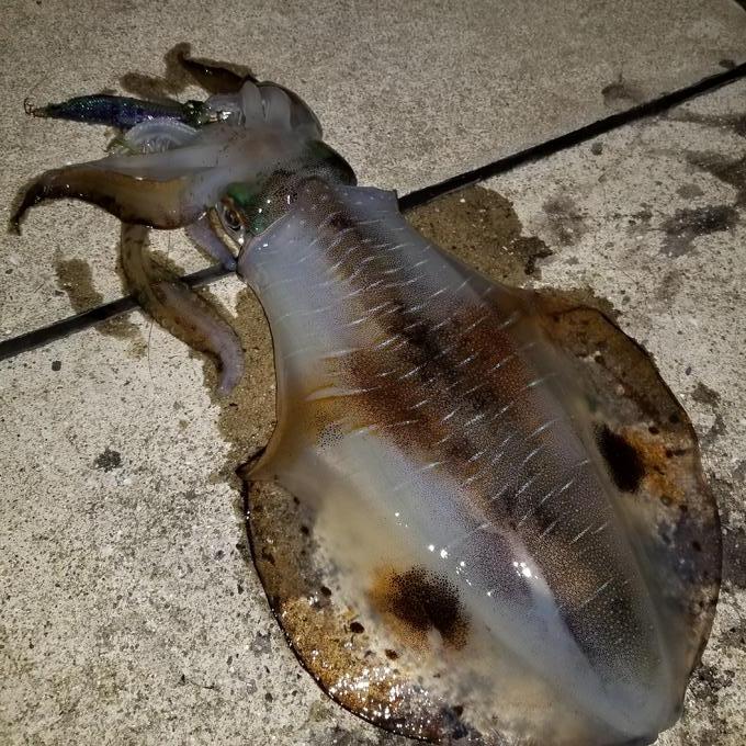 大事なことは何度も言います「ナイトはケイムラリアルアジです」 4~5人のヤエン師・餌釣師の隣でロングキャスト大遠投!!! 1投で釣れました。 夜の藻場でのエギングはエギを動かさない。これに限ります。