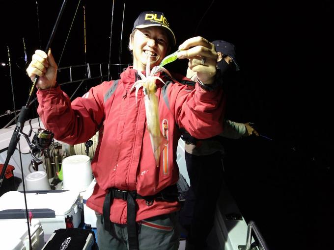 6月9日(金)イカメタル 18:00~23:30 待ちに待った週末の始まりです! 僭越ながら今日は船長の娘さん達の 講師としてお邪魔してきました(*^^*) 明るいうちに、道具の使い方~ 誘い~合わせ~取り込み方などなど 一通りレクチャーさせて頂き実釣開始です。 潮は早めの25号 ヒットゾーンはほぼボトム 遅めのスタートでしたが この時期特有の大剣ラッシュ突入! 掛かるとどれも長い(笑) みんな竿ブチ曲げながら(笑) 楽しい夜遊びを堪能しました! 全員安打おめでとうございます 釣果25杯(内パラソル5杯) キガアジ オモリグタックル ロッド:BLACKLION SQUIDRUN74OM リール:ハイパーフォース3000HG ライン:Pe0.6+リーダー4号 ルアー:DUELアオリQ