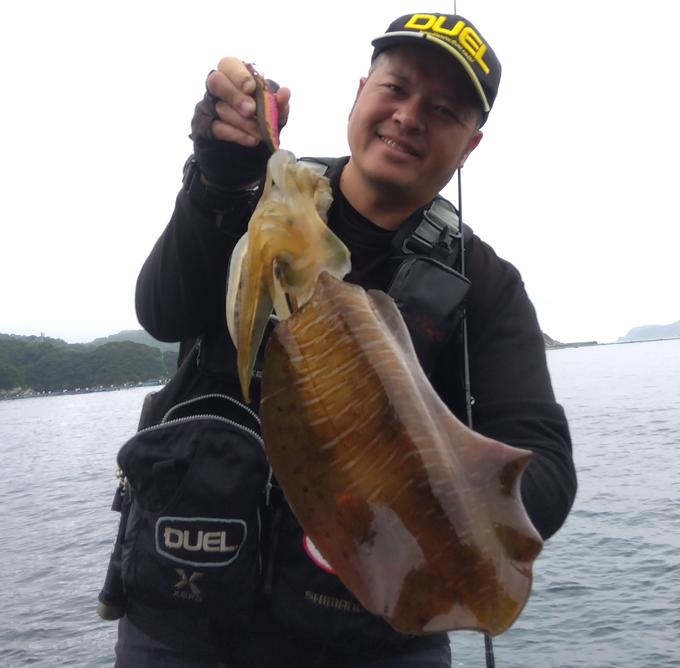 朝はアオリーQ3.5号の深場グリーンで早い潮の中でキロオーバーget。その後はゆるい潮の深場でエビQ3.5号とez-Qダートマスター3.5号の日中ピンクで連続キロオーバーget。その他にも小〜中型の元気なアタリがあり数釣りが楽しめました。