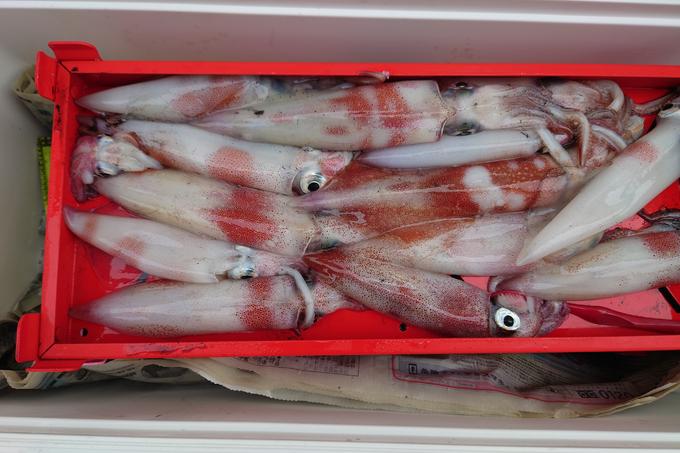 ケンサキイカを釣りに行ってみましたが、出船が遅く浅場に入れず50mライン、ボトムから探るとヒットしますが魚に殺られます、魚より上のラインでポツポツでした、また次回頑張りましょう。