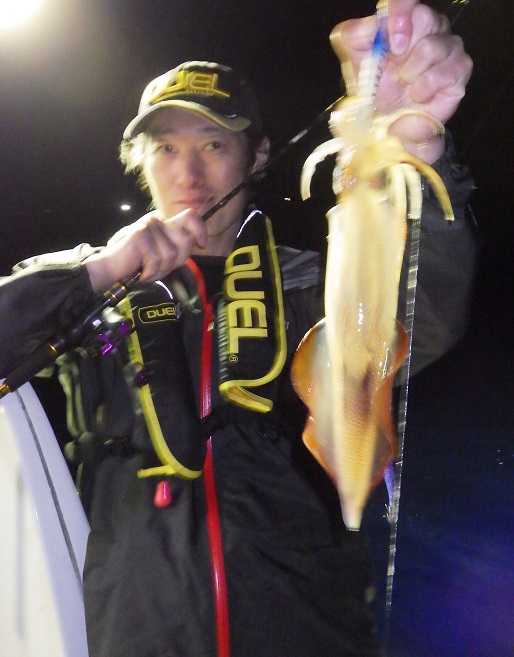 鳥取県境港の遊漁船フィールズでイカメタルに行ってきました。イカ釣りは約20年ぶりと言う事でイカの事は全く分かりません。とりあえずイージーメタル30号にイージースリム数本を持って乗船。 1時間程船を走らせ到着。明るいうちは反応は無かったのですが暗くなった過ぎからどんどん釣れだしコツをつかんで事もあり最終的に35杯で船中トップ。適当に選んだイージーベイトメタルとイージースリムが大活躍してくれました。