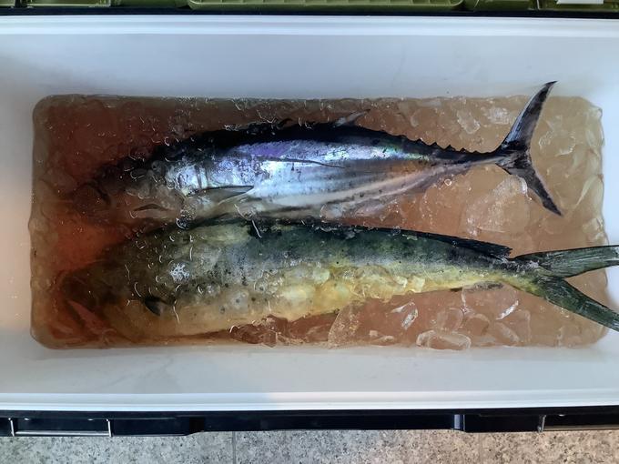 今回の釣行で人生2度目のカツオ釣り!場所は徳島県日和佐沖。海上に浮かぶパラオ周辺には、10隻近くの船が集結。1隻に5〜8人の釣り人が乗船していました。船長さんいわく、「昨日からサメが出没。ファイト中のカツオを横取りしていくので、とにかくゴリ巻きして❗️」で、12回当たりがあって、獲れたのはカツオ1匹とシイラ1匹のみ。他全部、サメに横取りされました。もっと強いタックルで、やり取りすべきだったと反省仕切りの釣行でした。