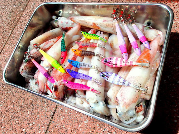 7月末、福井県嶺南小浜湾はイカメタルが絶好調。鉛スッテは、鉛スッテ四ツ目やイージーフィンミニメタル™ を選び、船長の指示重量に合わせ直感を頼りにカラーローテーション。ドロッパーは、実績のイージースリム™ 布巻を中心に常に反対色を交互になるよう付け替えながらローテーションした。当日の半夜便はアタリが間断なく続き、十分な釣果に満足の釣行でした。