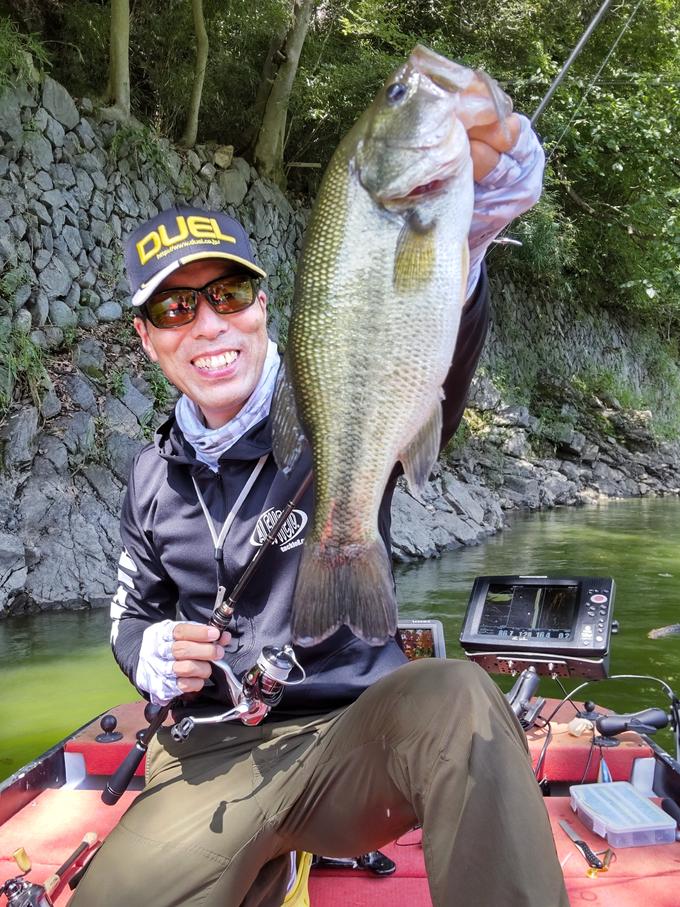 先週、小さいのがわんさか釣れたので今回は調子にのって同僚まで引き連れ津久井湖へ出撃! オイラは巻物やリーダーレスダウンショットなどでビッグサイズを狙ってみるものの・・・。 その間に後ろでは同僚がブロンクスシャッド2.4のダウンショットで小っちゃいやつをガンガン釣りまくり・・・。 更にはクイックダンスストレート3.8で体高のある45㎝まで釣り上げ余裕ぶっこいてるし・・・。 さすがに言い訳ができない状態に追い込まれオイラはスプリットショットリグで応戦。 得意のカーブフォールで中層に浮いたバスを狙いなんとか10本をキャッチ! この時、反応の良かったエリアはオーバーハング下のシェード。 それも大きなものではなくショアラインに点在する孤立した小さなシェード。 これにレイダウンなどのカバーが絡んでいれば高確率でバスがキャッチできましたよ。