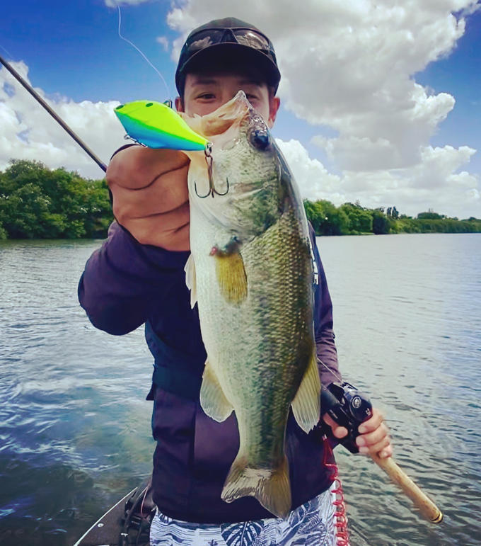 魚が食い上げてこない、横にも追わないという俗に言うタフコンディションと言われる状況下、ワームを入れたくなるかもしれませんがバイブレーションを使ったフォールの釣りが有効になるケースがあります。カバー際など、バスが身を置いているであろうスポットにバイブレーションをシュッ!と落とすだけで思わず反応させてしまいます。この時、着水直後のファーストフォールが一番反応が集中するので気を抜かないように。ハードコアバイブ75Sをこの釣りに初めて使ってみましたが、着水後のスライド&シミーフォールがすごく有効的なのと、自重がある分、根掛かりを外しやすくロストもゼロ!縦に落としても素晴らしいルアーです。