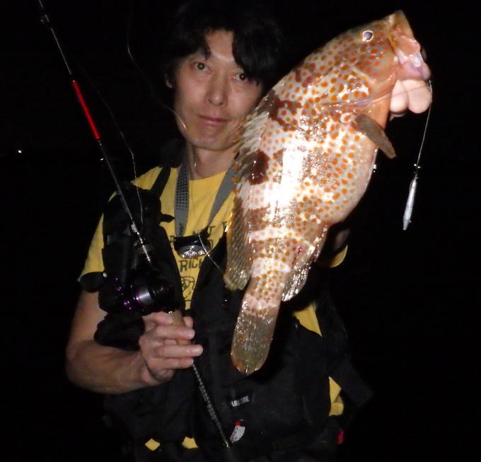 日中は危険な暑さの為、少しでも暑さの和らぐナイトロックフィッシュゲームへ行ってきました。今回のメインアイテムは「魚に見えないピンクフロロリーダー」ナイトゲームで効果があるかわかりませんがキジハタは深い所にもいる魚なので暗い所でも目は良いはずです。3インチのワームのダウンショットリグ。リフト&フォールで探るとすぐにタケノコメバル、カサゴ、マゴチを立て続けにキャッチ。続けてすぐ横の沈み根にキャストし、リフト&フォール後のステイで「ドンッ」かなり引くのでこれは良型!!根に潜られないよう強引にファイトし45cmのキジハタをキャッチすることが出来ました。今回爆釣でしたがナイトゲームだったので「魚に見えないピンクフロロショックリーダー」の実力はまだ本領発揮できてないはず。次回はデイゲームでも試してみたいと思います。