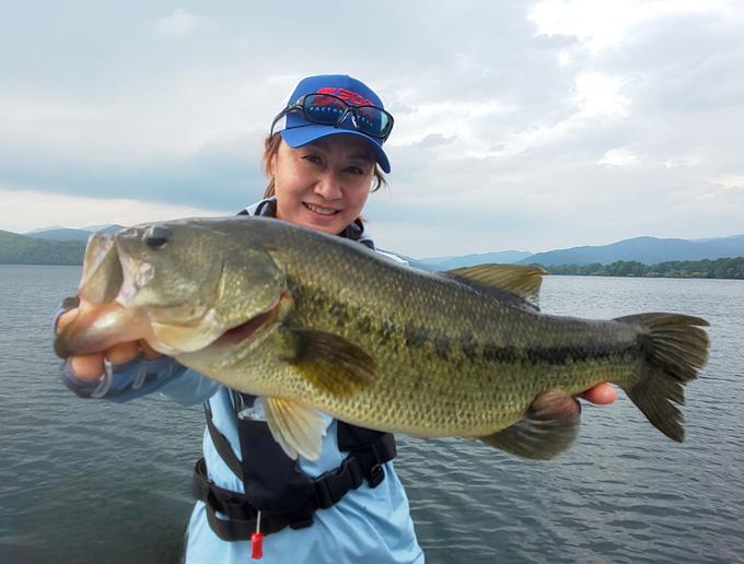 先日の桧原湖で良いサイズのラージが来ました。狙っていたワケではなかったから、遠くでドドドーンっと跳ねたのを見てビックリ!ヒバラージに出会えて最高でした。豊かな湖に感謝!