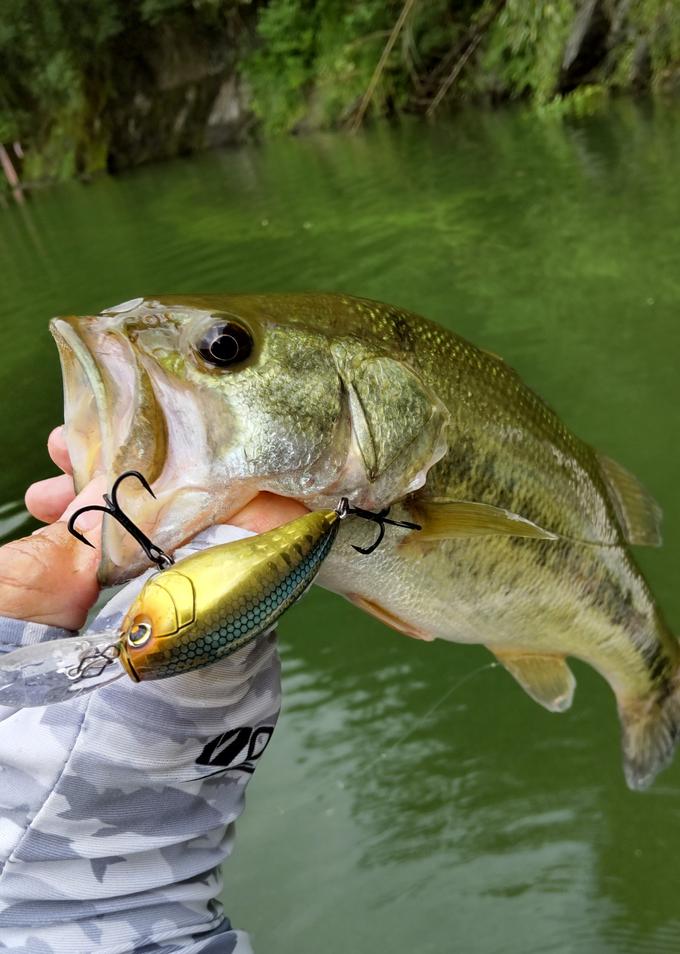 今週もいつもの津久井湖です。 台風の影響による濁りを期待し、強気のタックルでシャロー勝負に出撃したのですが水位変動なし、濁りなし、ゴミなし・・・。 タックルセレクトを間違えた感満載(笑) 変わったのは水温が2度ほど下がった程度ですかね。 何か良さそうな変化を探しながら下流から道志川のバックウォーターまで右往左往。 結果としては水深のあるレイダウンなどをカバーネコで狙いグッドサイズを2本キャッチ! その他、巻物はちょっと厳しくルアーのサイズを下げて喰わせ寄りの攻めでなんとな絞り出す感じでしたが、30㎝ちょっとぐらいまでのサイズに遊んでもらいましたよ。 この時期になるとベイトのレンジが下がり、浅いレンジの攻めが厳しくなってきましたね。 そろそろディープメインに切り替えた方がいいかも知れませんね。