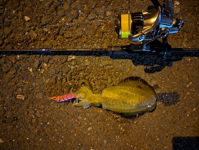 秋イカ調査です! 福井県は敦賀の潮通しが良い堤防で、バッグドリフトを使い、沖で300g!! この時期ではグッドなアオリイカをGETです♪