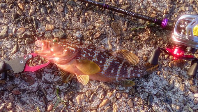 舞鶴方面のアコウ(キジハタ)が面白いですね!まだ、ポイントは探り探りの状態で、ヒットするのは30cm未満が多いですが、朝マズメからのプラグへの反応も良く楽しいです。今回は、LGヘビーミノーのKPRGカラーへの反応が良くて、良い思いをさしてもらいました。