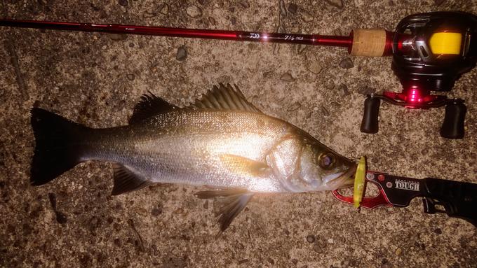 尾鷲釣行、朝一の暗い時間帯は小河川河口でシーバス(ヒラセイゴ)の反応が良かったです。LGシンキングペンシルのスローリトリーブが効きました。バラシも多かったのですが、4匹の釣果です。