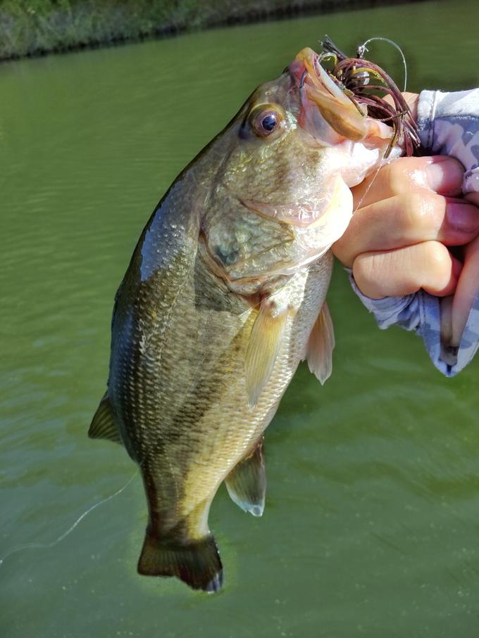 前回、ヘビキャロ、リーダーレスダウンショットなど、ボトムのズル引きで対する反応が良かったので、昨日はその復習を兼ねて津久井湖へ出撃! 今回、ズル引きでメインに使ったのはラバージグ。 ヘビキャロやリーダーレスダウンショットに比べサイズが選べるのでは?という理由からです。 また、フットボールタイプでボトムをズル引くと沈んだ落ち葉や枝などが絡むことが多いので、アーキータイプのコブラジグをチョイス。 ボトムの感知能力はフットボールタイプに比べると劣る感じはありますが、これはコレでありですね。 で、結果はというとブレイクをダウンヒルでゆっくりズルズルやってると時々“コンッ”っと明確なバイトはあるのですが、それで終わってしまいフッキングまでいたらず。 念のためヘビキャロ、リーダーレスダウンショットなども試したのですが。。。 結局ラバージグでキャッチできたのは1本のみで、今回の状況には合っていなかった様ですね。 その他としては津久井観光横のカバーからいつものカバーネコで33㎝絞り出しただけで、今回は完全に外した感じですね。 でも、ラバージグについては何か役に立つ予感がするので、懲りずにもう少しチャレンジしてみます。