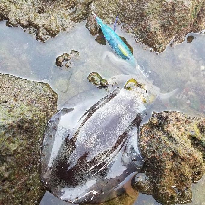 短時間でしたが海の状況が知りたくて釣行してきました。 主にシャロー帯を歩いてLC(スロー)のエギを選択。烏賊が溜まりそうなポイントへ投げ込み、パニックジャークで誘うと直ぐに反応してくれました。1時間半しか釣りが出来ませんでしたが二桁釣れてくれて満足です。烏賊は全てリリースしました(^^)/