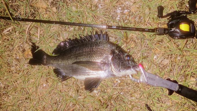 秋の荒食いと言う感じではないですけれど、淀川のチヌは良い感じです。今回は風が強くて苦戦しましたが、ソリッドバイブ65で魚は出せました。小型サイズも含めて3匹の釣果でした。