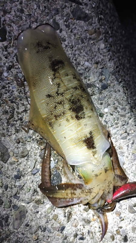 気が付けば・・・3年ぶりのアオリイカ! まずまずのサイズで、ちょっと焦りましたが何とか捕獲成功。気持ちいいジェット噴射も味わえて、めちゃめちゃ嬉しかったです。