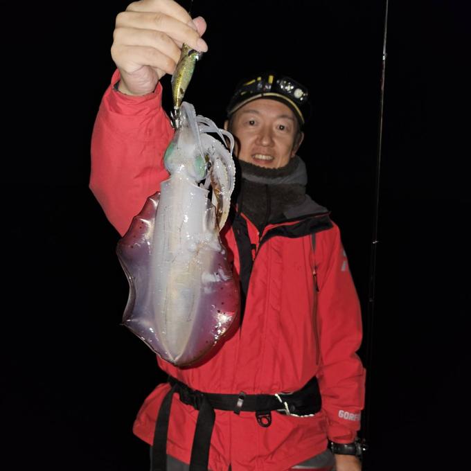 ティップラン沖上り後、釣友が待つ磯場で合流!攻められまくった後でしたが1投目から良型ヒット!信頼のブルー夜光ゴールドリアルアジ!流石です