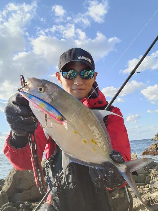 足元でスマガツオのボイルが始まったのでミノーを通すとなぜかナンヨウカイワリでした。