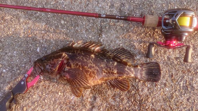 高砂のタケノコメバルです。明石~高砂付近もタケノコメバルの魚影は濃く、40cm位迄のサイズが釣れています。ワームで手堅く釣るか、クランクベイト等で狙ってゲーム性を上げる釣りも面白いですね!