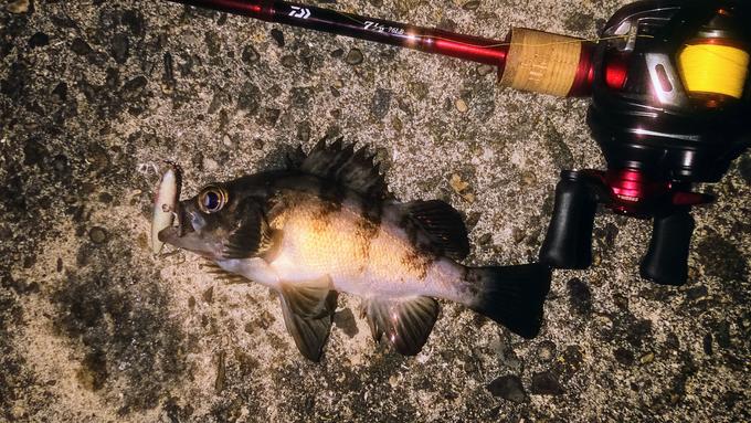 淡路島のナイトゲームでメバルがヒットしました。ヒットルアーはLGシンキングペンシルで、シャローエリアを探っての釣果です。20cm程でしたが嬉しい1匹です。