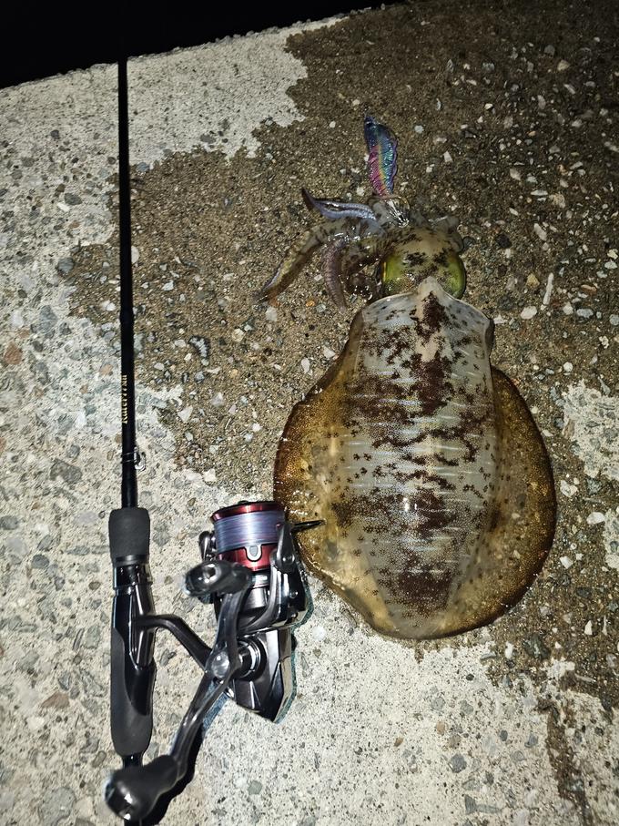 雲の合間から月がみえて潮も効いてきた満潮前にやっとまともなサイズ来ました 745gでした✌️