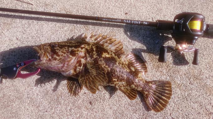 淡路島のタケノコメバル33cmです。このサイズになると引きも強く、1匹の満足度は高いですね!リーダーはピンクフロロの8Lbsで、2.5gJH×3inワームにヒットしました。