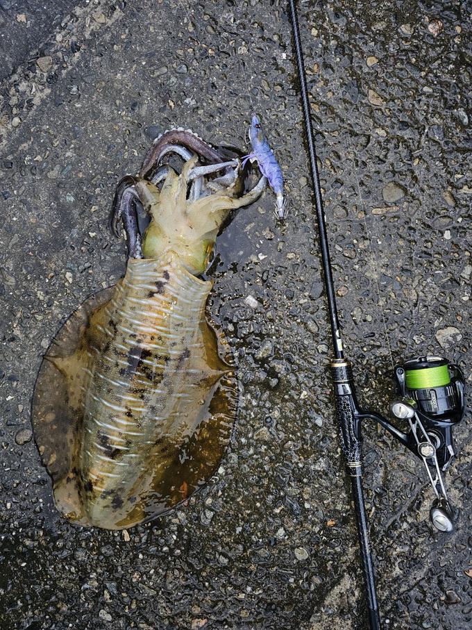 小雨だったので仕事終わりにちょっとだけ カッパきて泳がせさんがふたり 1時間ほど前から投げてるけど全くあたりないって
