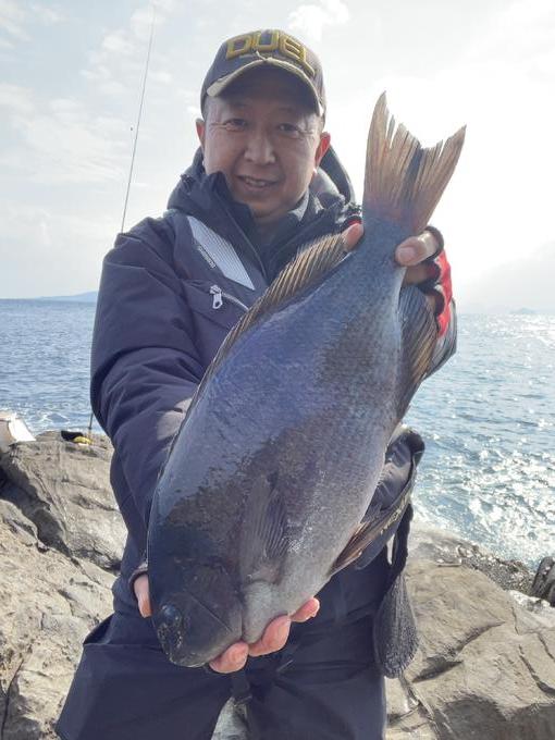 3月3日今年初となる上五島の磯へ行って来ました。 午前5時風裏になる倉島三角横の南のハナレに瀬上がり。 まずはエギングを開始するもアタリはなく、フカセ釣りにチェンジ。薄っすら夜が明け始める頃スタートすると早速48センチの口太クロが釣れ、その後も45、42センチがヒット。完全に明るくなると潮が緩みスズメダイの活性が上がり、しばらく本命クロのアタリは遠のいたが、潮が動く場所を探してポイントを点々と移動して30〜42センチの口太のヒキを納竿の時間まで楽しみました。