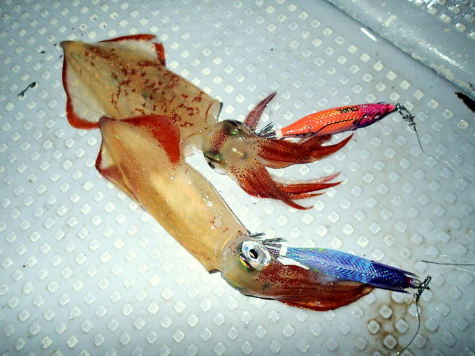 まもなく新色追加の”イカメタル用エギ・浮きスッテ・鉛スッテ”のインプレ釣行でした。アタリの渋い釣況の中、ケンサキイカのダブルヒットもあり、確実に獲物を捕らえてくれたシステムカラーに今シーズンの好釣を予感できた釣行でした。