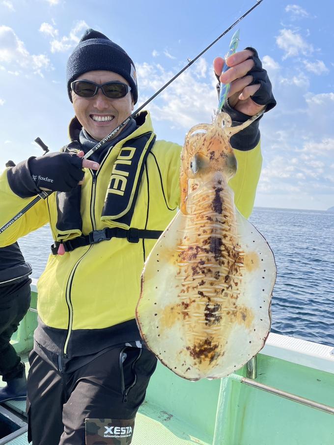 三重県のエヌテックマリンへ、ティップランエギングの修行に行ってきました! 風が強く、なかなか素直に流れない船が、いい感じに流れた瞬間に「プルっ!」と震えたアタリでヒット! 釣れたのは1.4Kgの良型のアオリイカ♪でした。