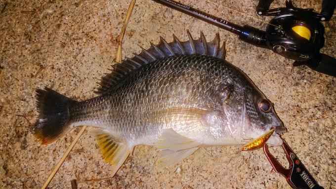 13日夜明け前の淀川に釣行しました。が、ボラが多過ぎてバイブレーションチニングは大苦戦!ルアー、ラインにボラが触れて何が何やら・・・。ですが、LGヘビーミノーでキビレ(38cm)が釣れました。流れに押される感じでボトムまで沈めた巻き始めにガツンと良いバイトでした。