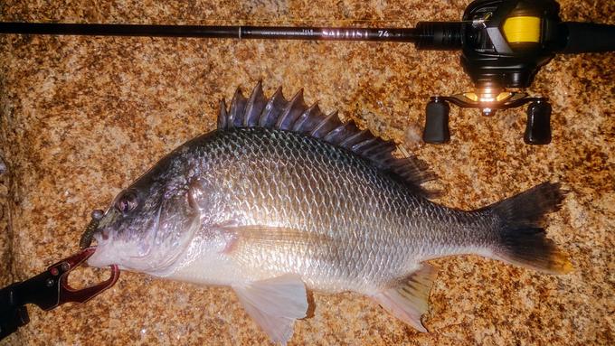 日付も変わった深夜2時に淀川チニングに行きました。今回はソフトルアーメインで狙ってみました。3.5g5gジグヘッド、5g7g直リグ+サタンワーム、ホッグ系ワームのボトムバンプアクションで狙いました。釣果的に20cm~40cmの複数釣果でしたが、ソフトルアー、ワームにバイト、ヒットするのはキビレが多い感じです。ですが、バイトからのフッキング動作が楽しいですね!