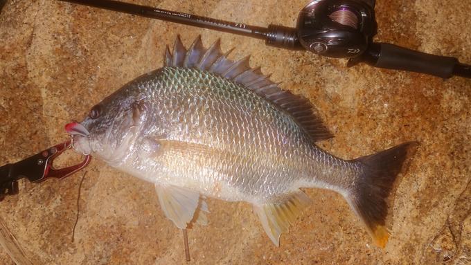 20日夜も淀川でチニングです。キビレが好調で、23cm~39cm4匹の釣果全てキビレでした。