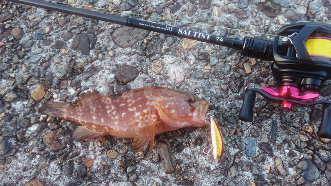 舞鶴方面のライトゲームで、朝マズメにアコウ(キジハタ)が小型ながら連発しました。LGヘビーミノー、LGバイブのリフト&フォールで喰ってきました。まだ、この時期の水色は澄んでいるので、ピンクフロロショックリーダーの特性が効果的ですね!フォールバイトが多い感じです。