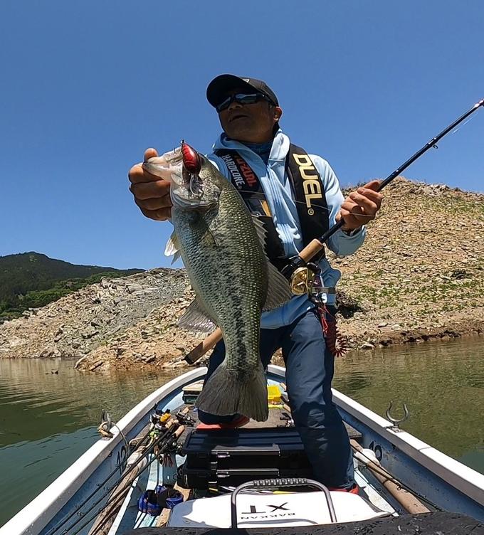 初フィールドとなる神流湖へ!全くわからないフィールドなら広く探るのが鉄則です!自分の主軸となるクランキングゲームで湖を一周半!!ハードコアクランクMR60Fでgoodコンディションが釣れて来てくれました!ハードコアクランクMR60Fはボトムに当てずに中層クランキングで使ってみてくださいね〜