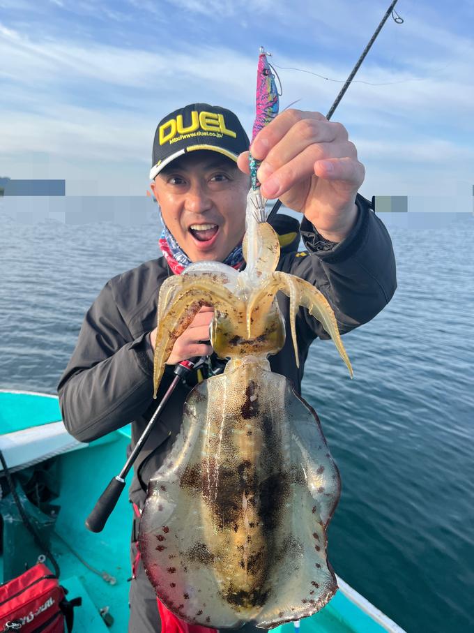 多忙期の為、投稿が遅くなりまして申し訳ございません。5/3(金祝)に毎年恒例の宗像沖のボートエギング大会に参加して参りました。ボートは友人の原野氏が操船する「三平太号」で、同行者は私と原野氏、そして奥様の3人での釣行です♪船に乗る前に、数日前までは1人10パイもぜんぜんイケるんじゃ!と聞いてワクワクし乍らポイントに向かいます♩ポイントはシモリ根と砂地、藻場の点在するエリアで船を流し乍らキャストして狙います!パイロット餌木は勿論!EZ-Qキャスト喰わせブルー夜光マーブルピンクの数釣りマスター!このポイントでは去年もかなり有効なカラーだったので、先ずはこの餌木で釣って行きます♫ 同行者もポツポツと釣りますが、数日前の様に1人10パイってペースではなく結構シブい状況で、活性が低いと判断して出来るだけボトムから餌木を浮かせない様に…とボトムステイを長く取って出来るだけボトムをキープさせて狙って行きます!私は最初に800gのメスをキャッチ!春イカにしては可愛いサイズですが、ひとまず釣れて一安心♬二匹目のドジョウならぬ2ハイ目を狙って釣って行きます♪つづく…
