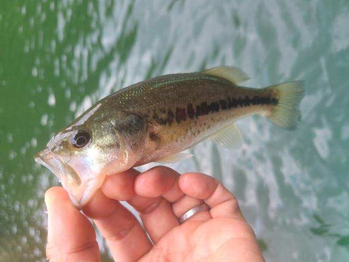 お初の生野銀山湖。子バスは元気でよく釣れます。ハードコアシャッドでキロアップをかけましたがバレてしまいました。