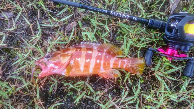 三重県の尾鷲方面にハタ類を狙って釣行しました。黒潮の影響を受ける地域なので、地元の大阪湾では見れない魚種が釣れますね!画像のアカハタも、小型ながら嬉しい魚です。ボトム攻めでアカハタ、リトリーブで浮かすとオオモンハタと同じハタ類でも性格の違いが面白いですね!