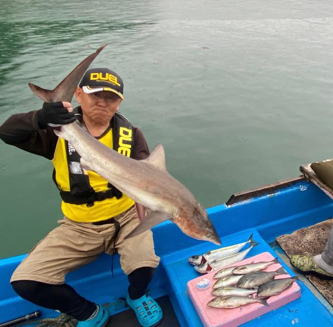 3週連続で今回は ホームグラウンドの 江住の森下Fさんに美味しいイサギと梅雨グレを狙って行ってきました。 前日の雨のせいか少し濁りが。 潮も動かず時折小さいイサギがボツボツと。その後 船の回りをサメが回遊