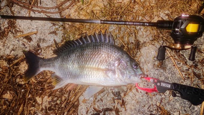 今回、淀川のチニング釣行では7匹の釣果でした。内6匹がキビレでサイズは22cm~37cmでした。