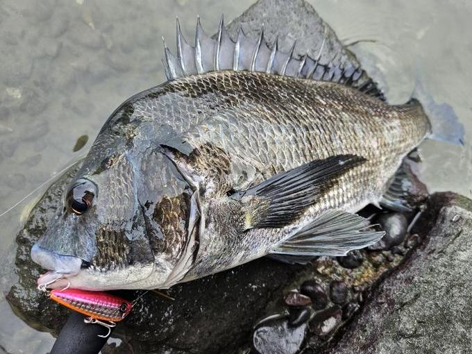 今年マイブームなチヌトップ! 初場所ってことでサーチがてら LGポッパーで広範囲に探ってたら飛び付いて来ました