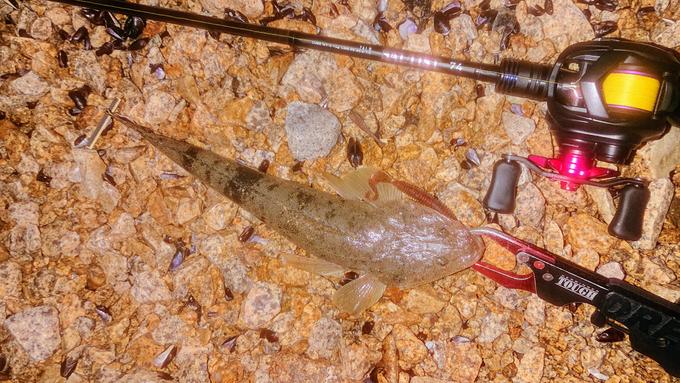 27日夜明け前の淀川でチヌ・キビレを狙っていてマゴチが釣れました。30cm未満でペラッペラでしたが、3匹ヒットです。