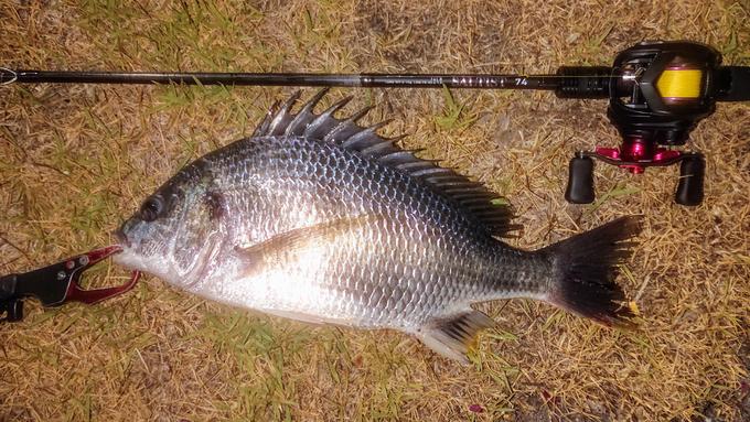 3日深夜~4日早朝まで大阪湾でチニングです。2in~3.5inワームを使った中で、2inワームが正解みたいで多数のバイトが有りました。最大魚は40cmでした。ベイトタックルで楽しんでいますが、リーダーの長さが重要で、私の場合3.5m程とかなり長く取っています。ロングリーダーにする事でキャスト時のノットがガイドに引っ掛かる等のトラブルが激減します。