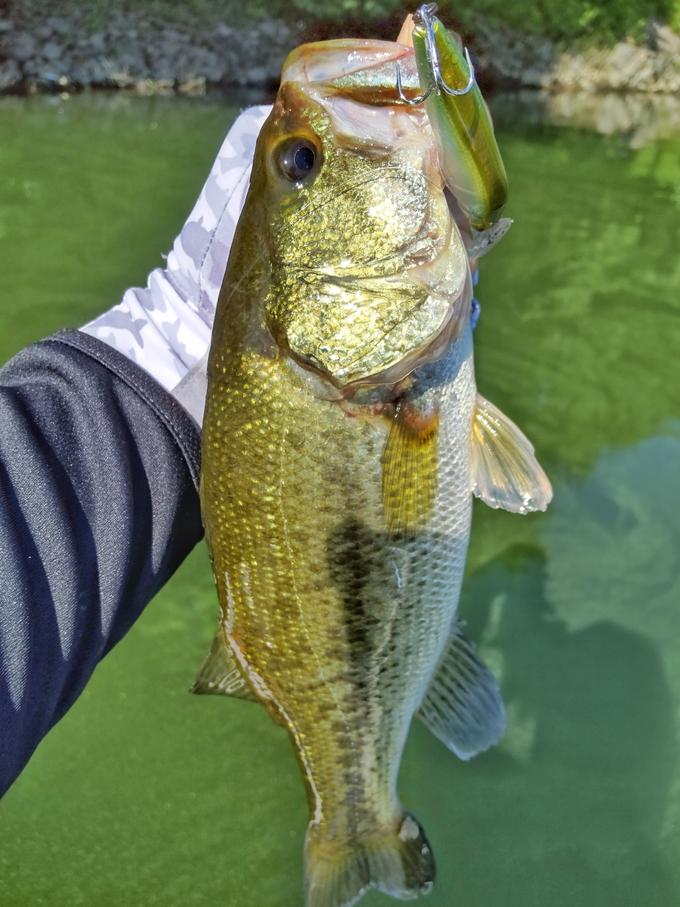 今回はハードベイトメインで津久井湖へ出撃! シャローからディープまで色々と試したのですが、最も反応が良かったのはハードコアシャッドSR。 ショアライに集まる3~4㎝のワカサギの周りでの早引きが効きましたね。 ハードコアシャッドは巻き抵抗が弱く、スピードが上げられるので、早引きにおススメですよ。 また、カラーは水質が良かったからなのかゴーストパールシャッドが良く、サイズは選べないものの数釣りが楽しめました! 途中、気になったシャロカバーへオクタルクローラーのヘビーネコを入れてみると、狙い通りグッドコンディションのバスをキャッチ! 巻いても撃っても楽しめる状況ですよ!